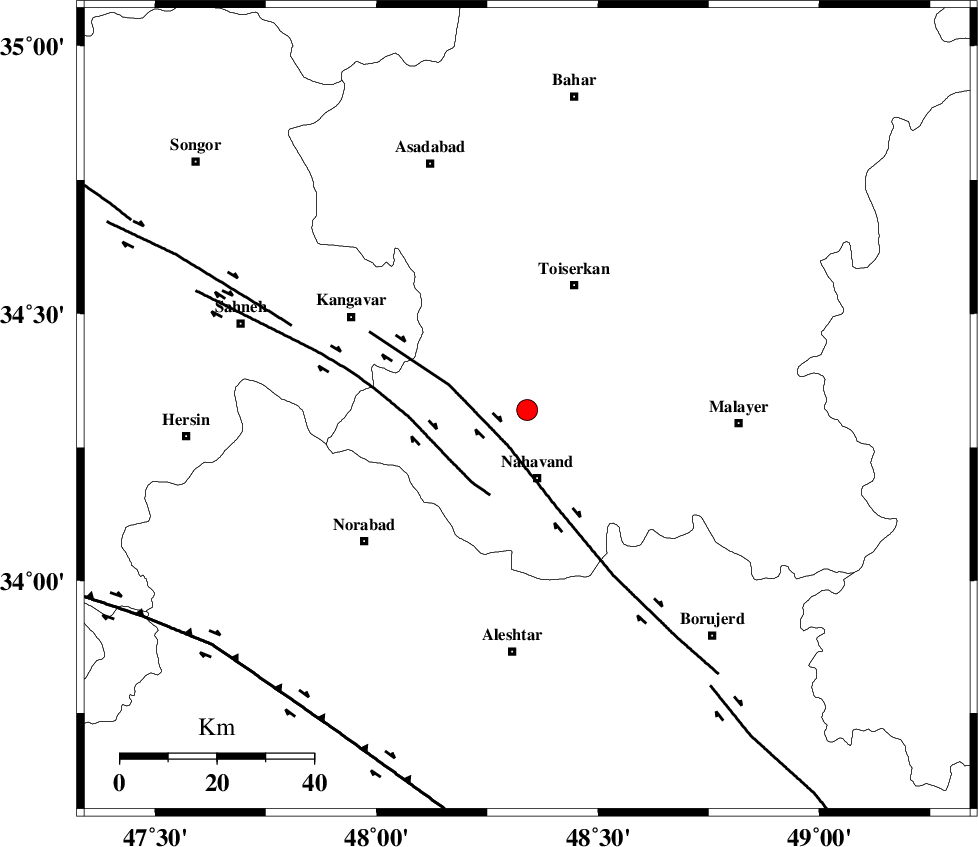 NAHAVAND_F (Length: 102 km) , Distance to epicenter: 8 km | |