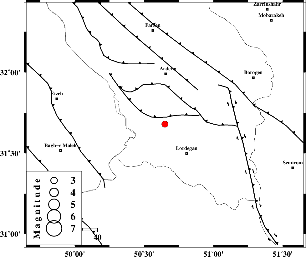 SABZKUH_F (Length: 67 km) , Distance to epicenter: 5 km | |