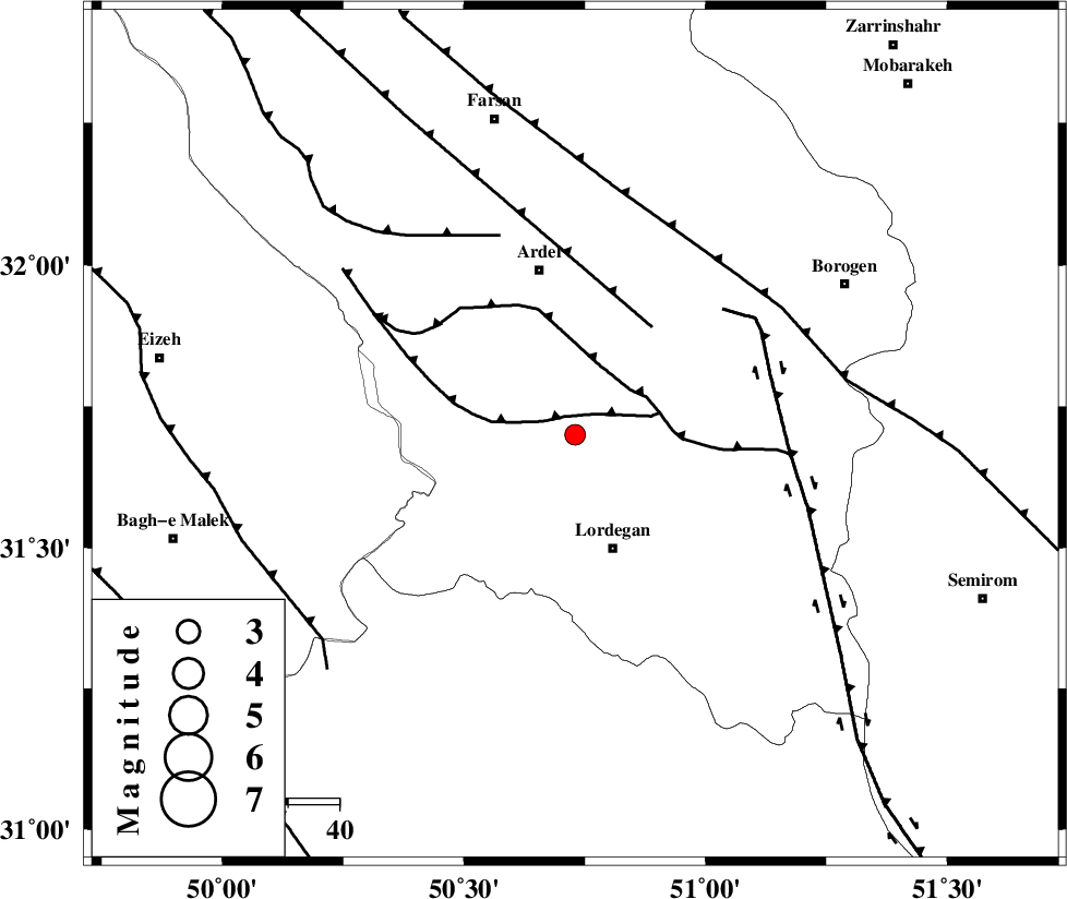SABZKUH_F (Length: 67 km) , Distance to epicenter: 4 km | |