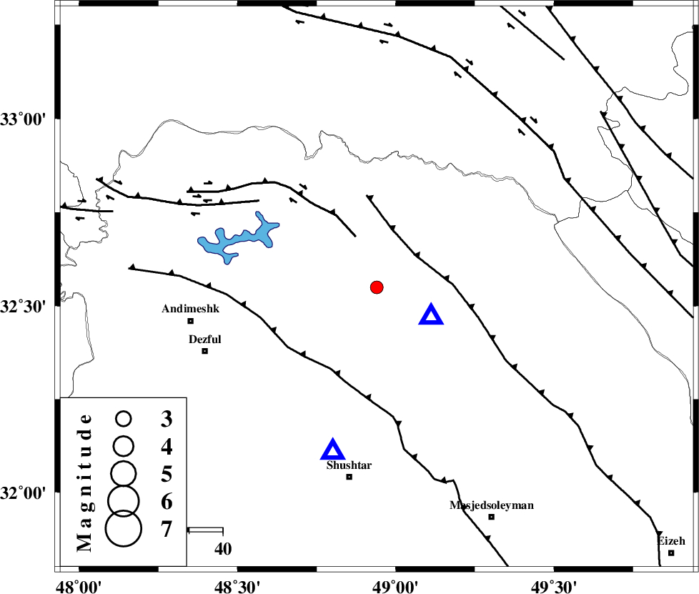 DEZFUL_EMBAYMENT (Length: 228 km) , Distance to epicenter: 28 km | |