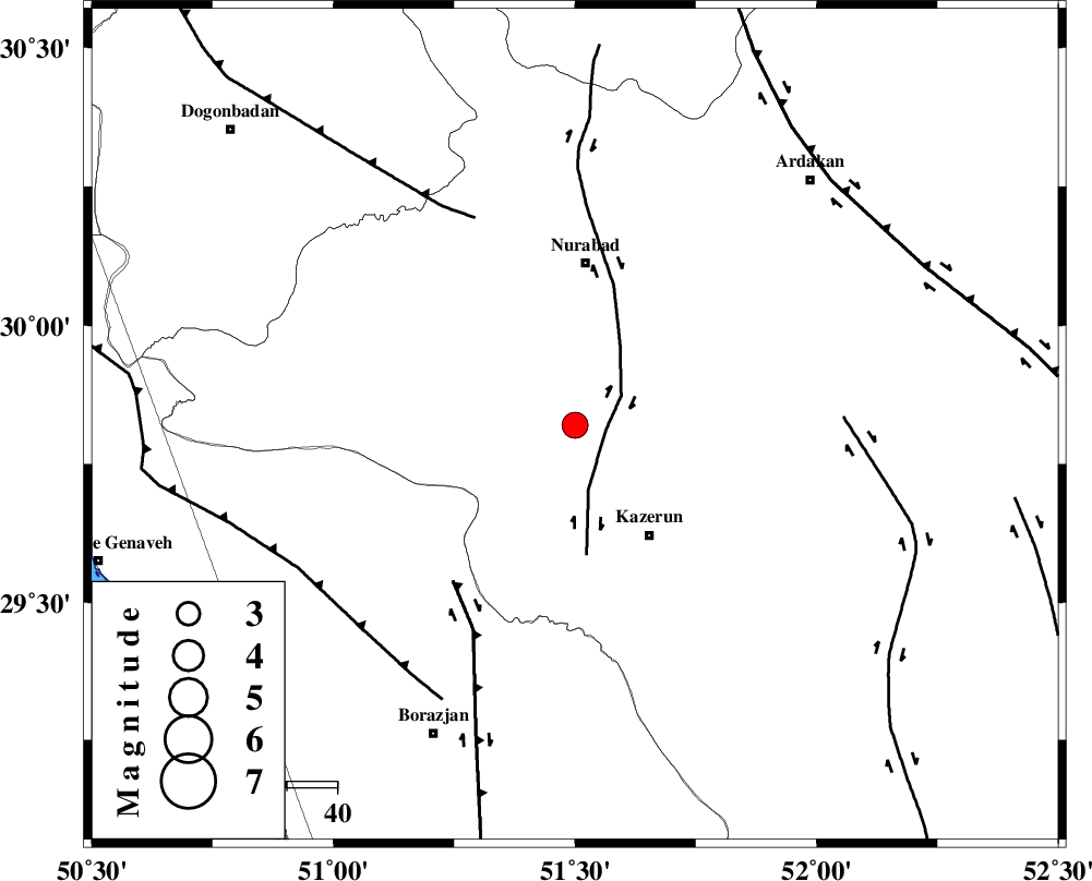 KAZERUN_F (Length: 96 km) , Distance to epicenter: 6 km | |