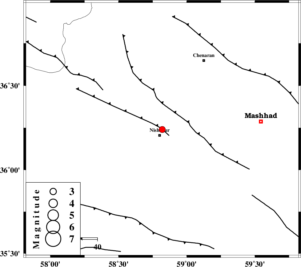 NAYSHABUR_F (Length: 74 km) , Distance to epicenter: 1 km