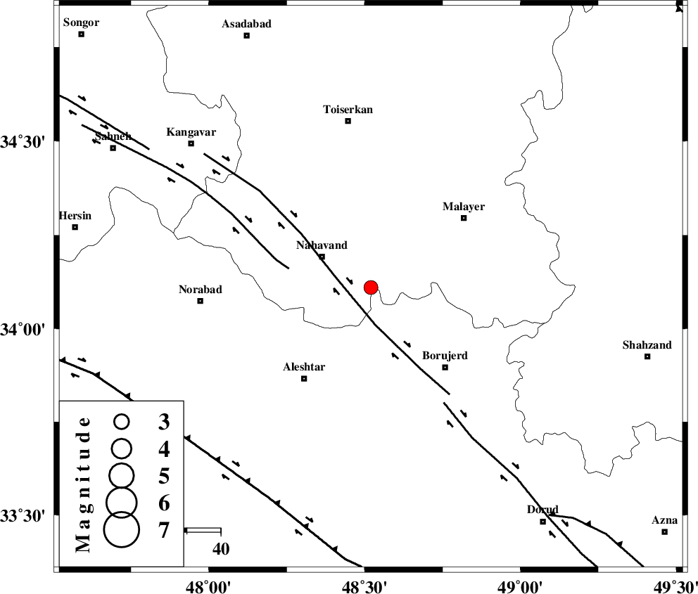 NAHAVAND_F (Length: 102 km) , Distance to epicenter: 11 km | |