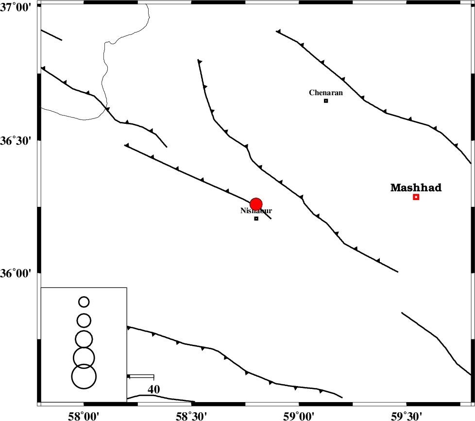 NAYSHABUR_F (Length: 74 km) , Distance to epicenter: 2 km | |