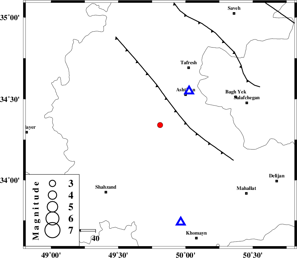 TAFRESH_F (Length: 117 km) , Distance to epicenter: 15 km | |