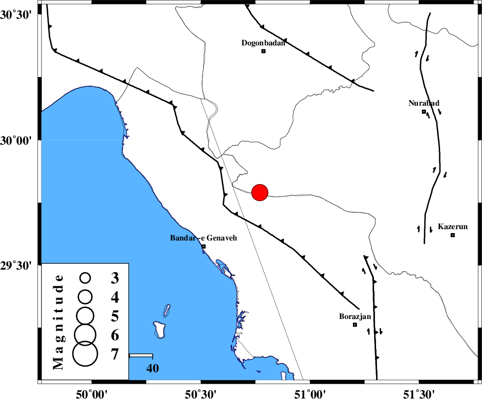 BORAZJAN_F (Length: 168 km) , Distance to epicenter: 54 km | |
