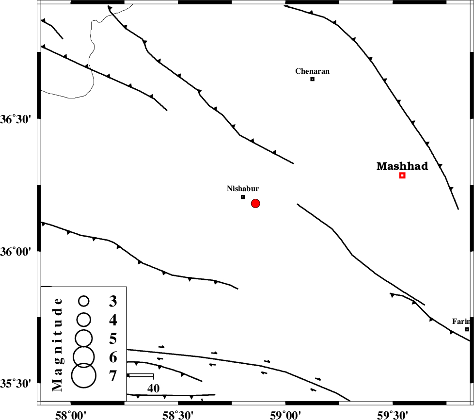 NAYSHABUR_F (Length: 74 km) , Distance to epicenter: 3 km | |
