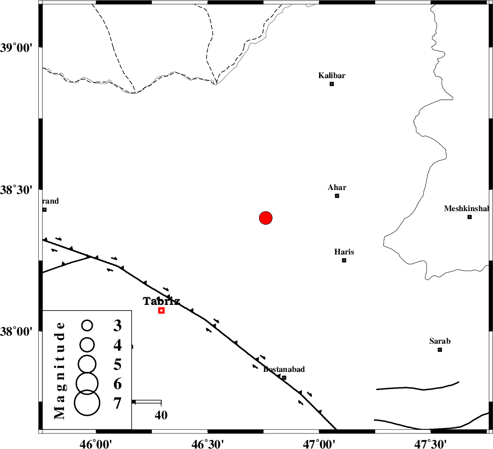 N_TABRIZ_F1 (Length: 222 km) , Distance to epicenter: 47 km | |