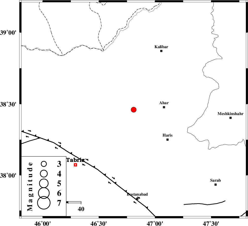 N_TABRIZ_F1 (Length: 222 km) , Distance to epicenter: 54 km | |