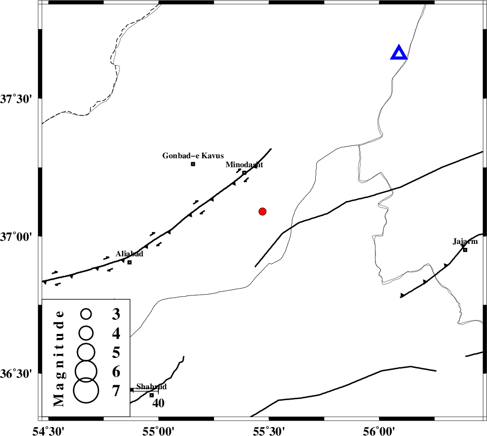 KHAZAR_F (Length: 523 km) , Distance to epicenter: 46 km | |