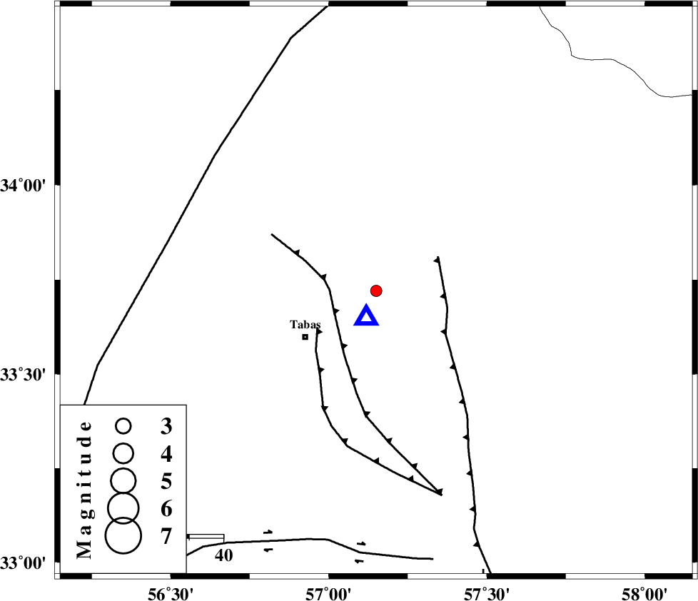 TABAS_F1 (Length: 91 km) , Distance to epicenter: 14 km | |