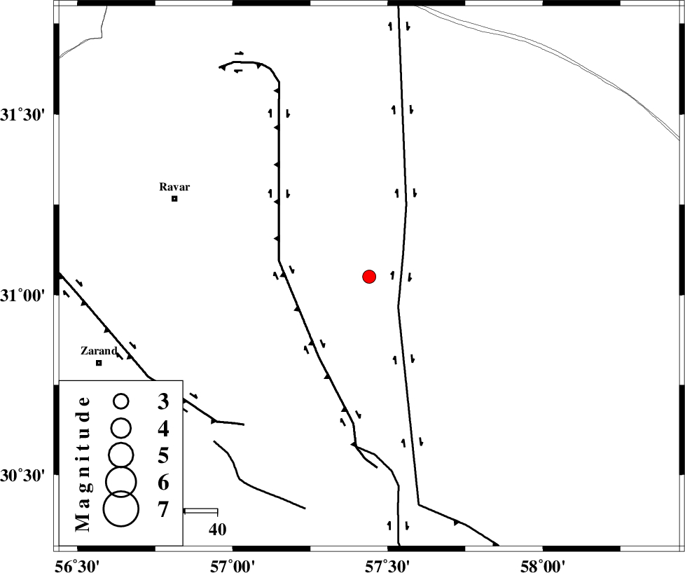 GOLBAF_SIRCH_F (Length: 114 km) , Distance to epicenter: 53 km | |