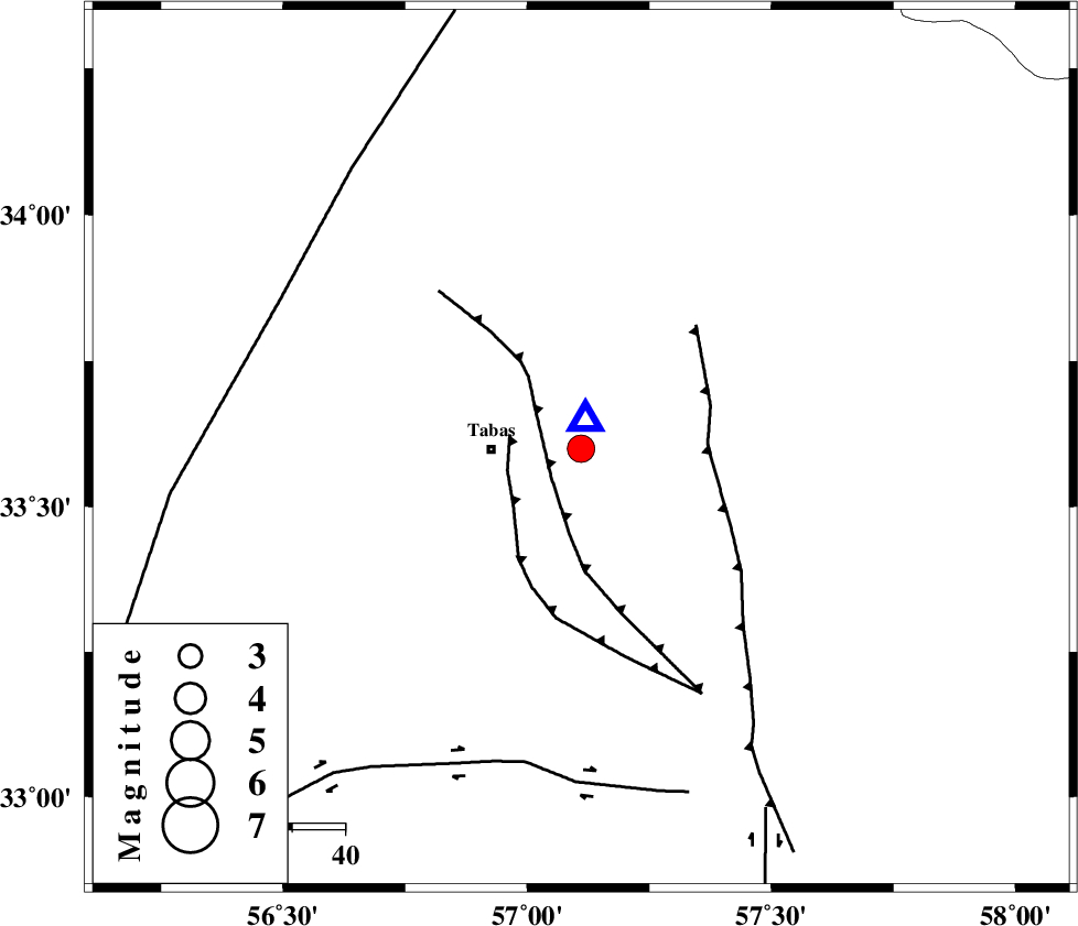 TABAS_F2 (Length: 67 km) , Distance to epicenter: 14 km | |