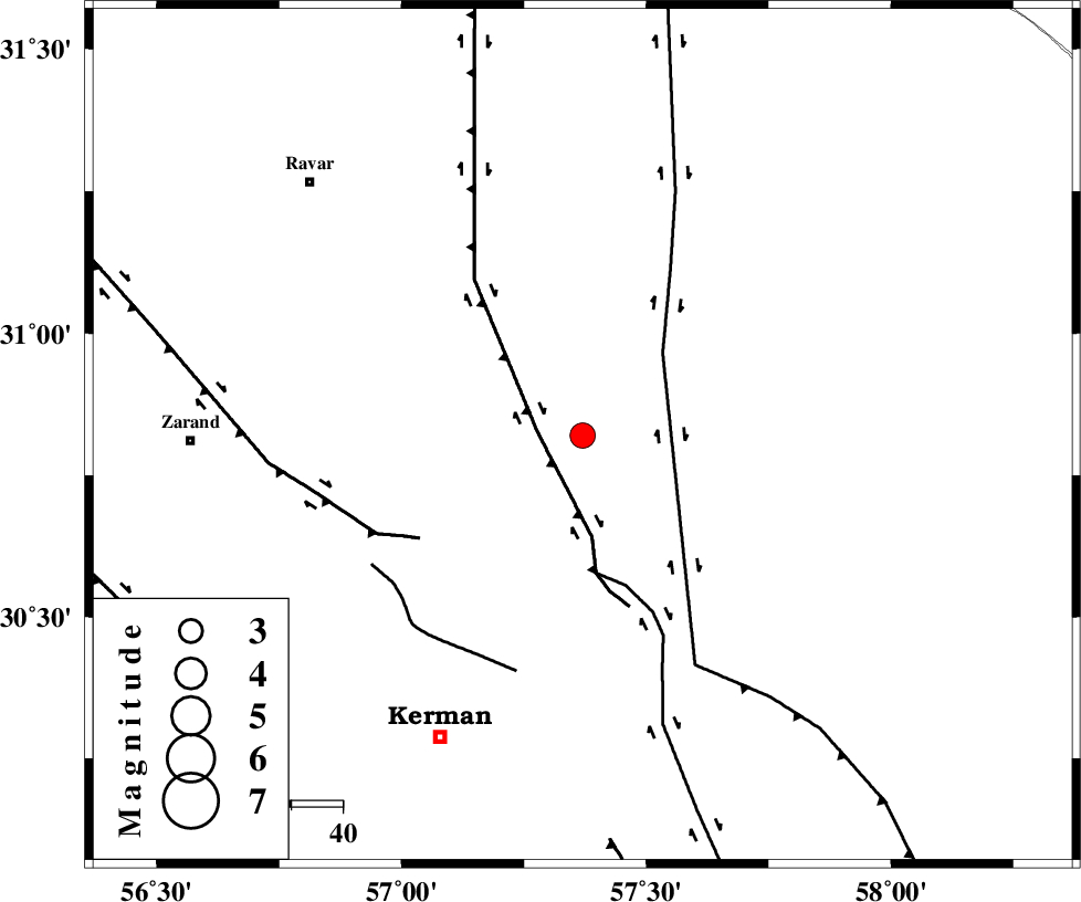 GOLBAF_SIRCH_F (Length: 114 km) , Distance to epicenter: 27 km | |
