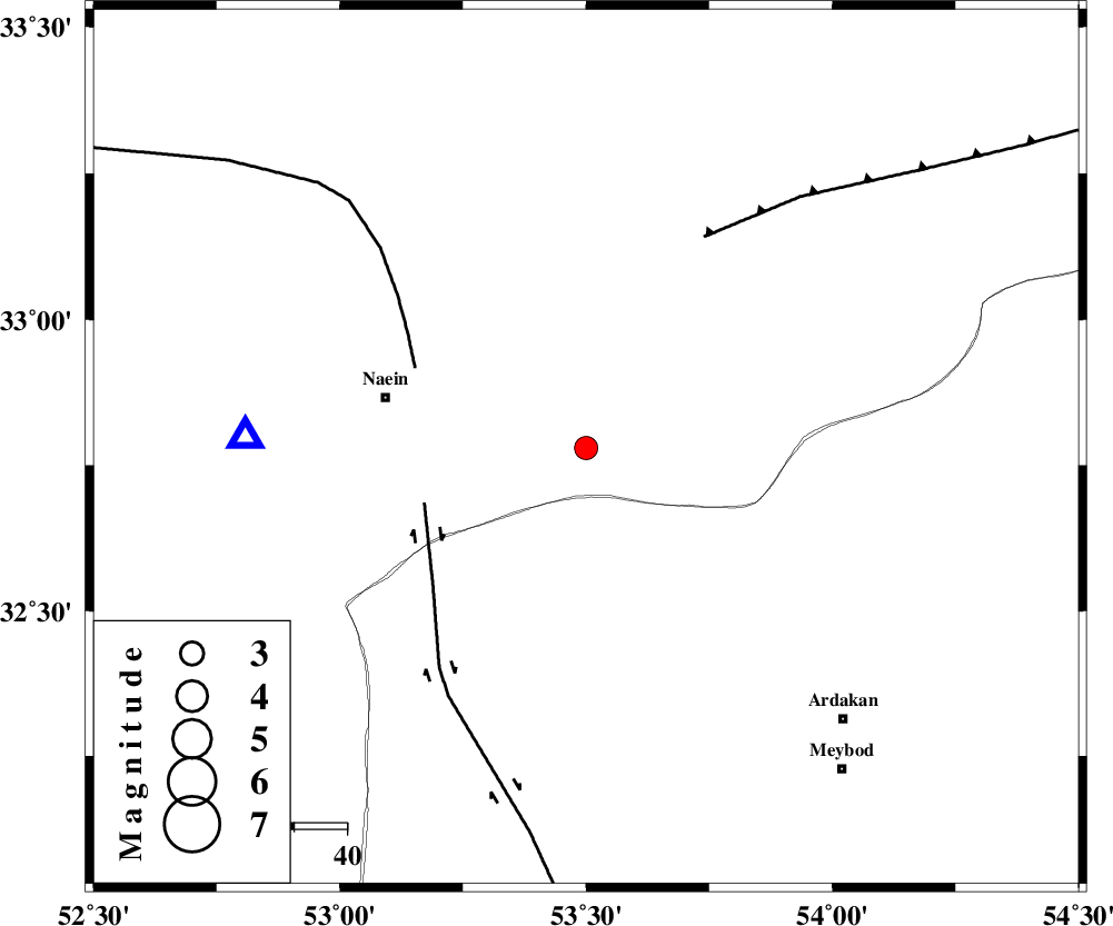 SHAHR_E_BABAK_F1 (Length: 392 km) , Distance to epicenter: 32 km | |