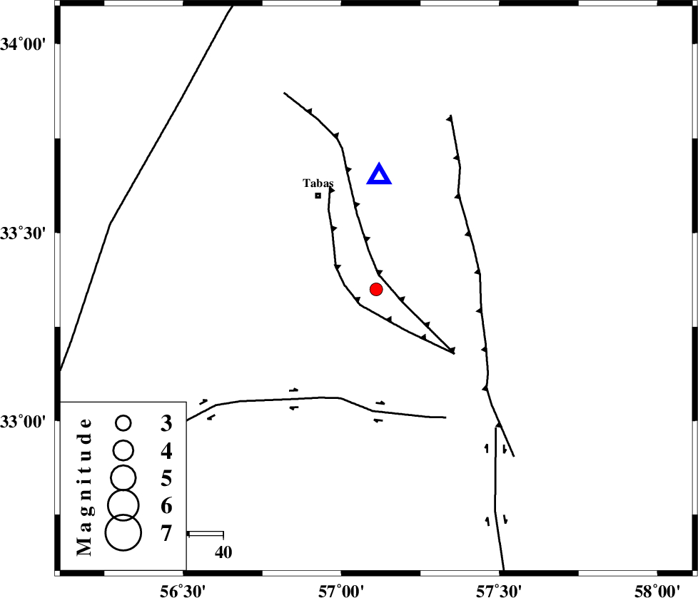 TABAS_F2 (Length: 67 km) , Distance to epicenter: 7 km | |