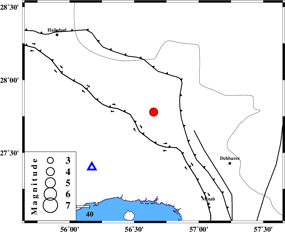 ZENDAN_MINAB_F_Z1 (Length: 183 km) , Distance to epicenter: 34 km | |