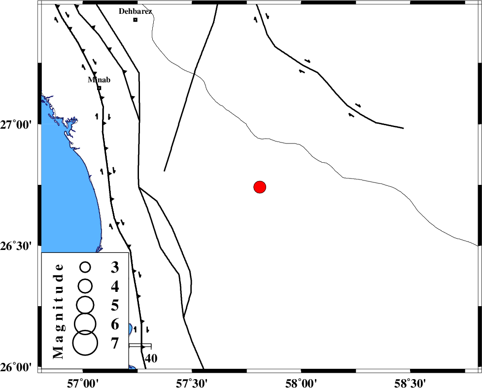 ZENDAN_MINAB_F_Z2 (Length: 63 km) , Distance to epicenter: 44 km | |