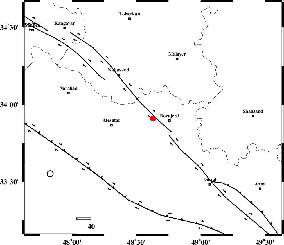 NAHAVAND_F (Length: 102 km) , Distance to epicenter: 5 km | |