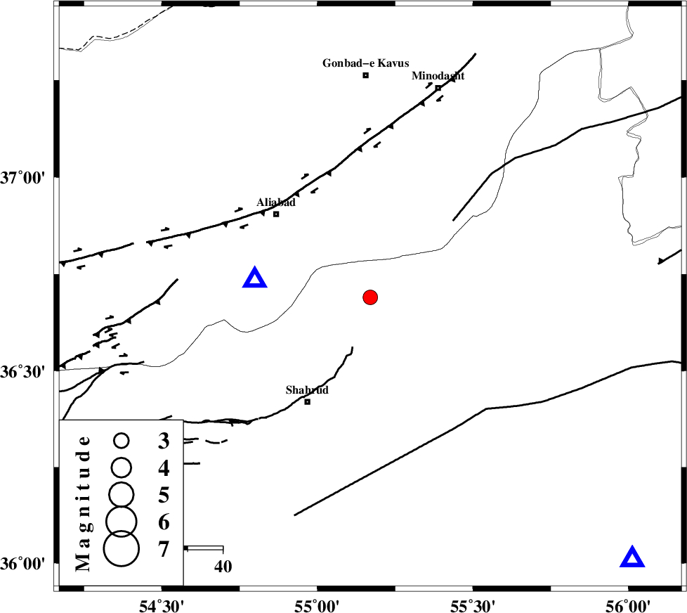 KHAZAR_F (Length: 523 km) , Distance to epicenter: 40 km | |