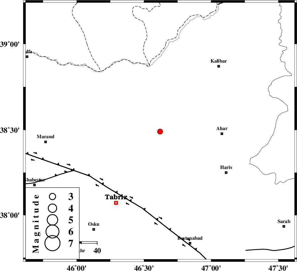 N_TABRIZ_F1 (Length: 222 km) , Distance to epicenter: 50 km