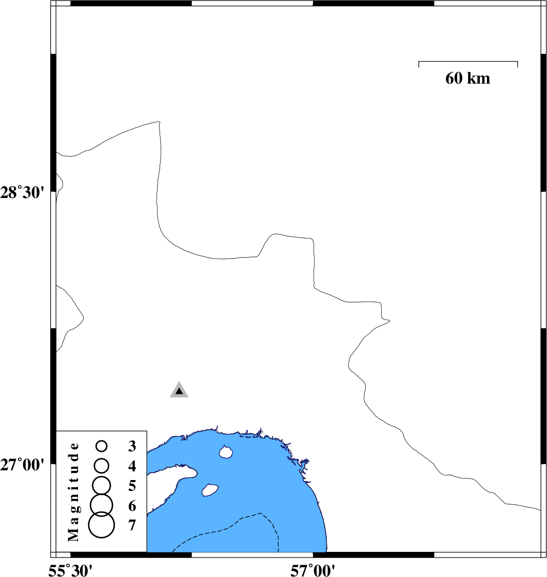Map Region : lat:26.51-29.51 lon:55.41-58.41 Map's coordinate is invalid North ** West ** East ** South ** Show Cities Province Center None Province And Township Center Show Foreign Cities Yes No Show Fault Mechanism Yes No Show Province Boundaries Yes No Show Stations No Yes With Name Yes Without Name Map Title Invalid Title Get Ascii Data in Format : List Seisan GSE2.0 Prel. Rep.DateTime(UTC)Time(Local)Lat.Lon.DepthMag.RegionWaveform 2020/07/19 17:40:35.9 22:10:35.9 28.0156.9110 ML:3.2 Hormozgan Province, 77 km -West of Kahnuj