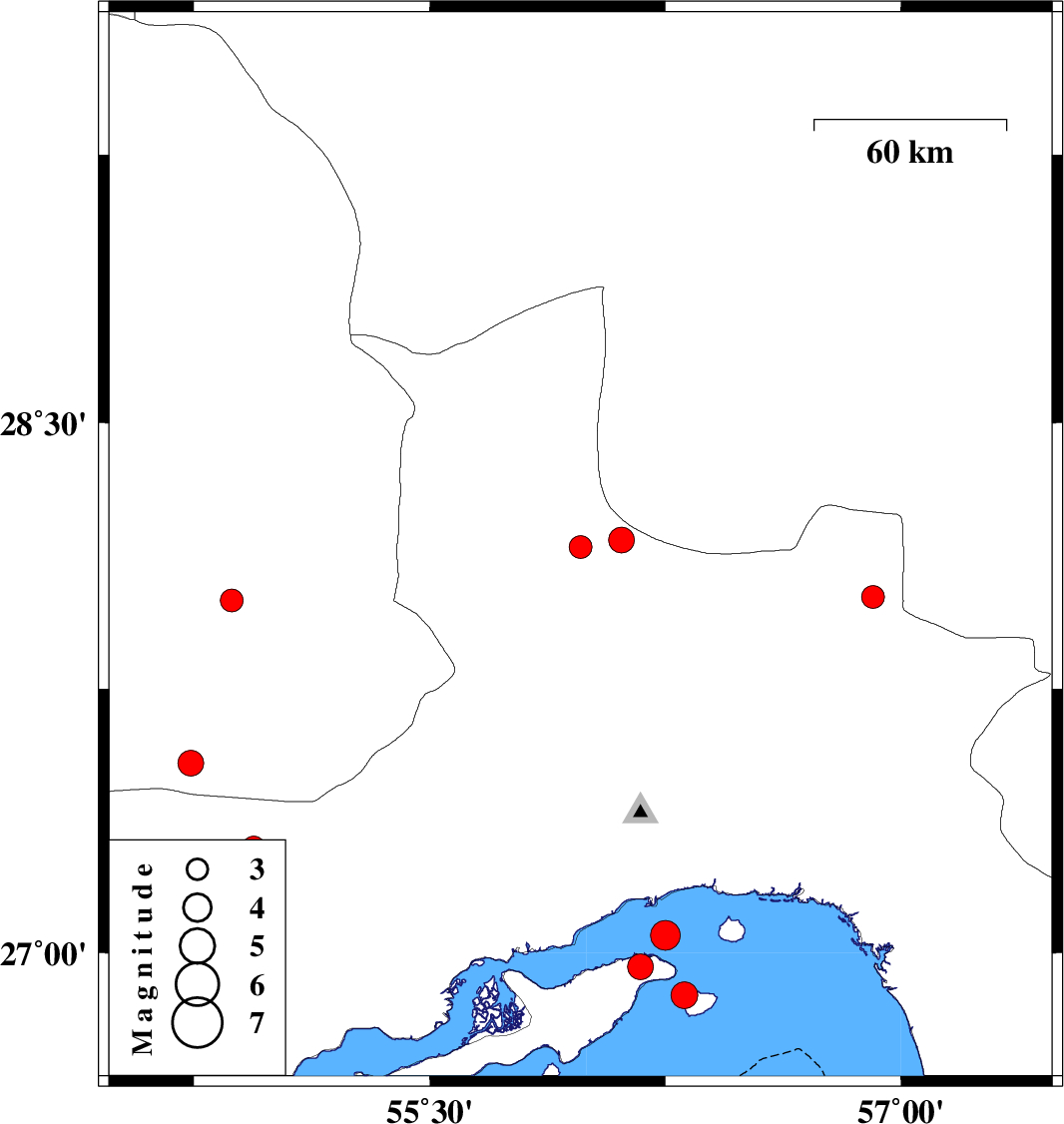 2020/07/16 | 02:43:06.2 | 07:13:06.2 | 27.54 | 54.74 | 10 | ML:3.6 | Fars Province, 42 km South-East of Lar |