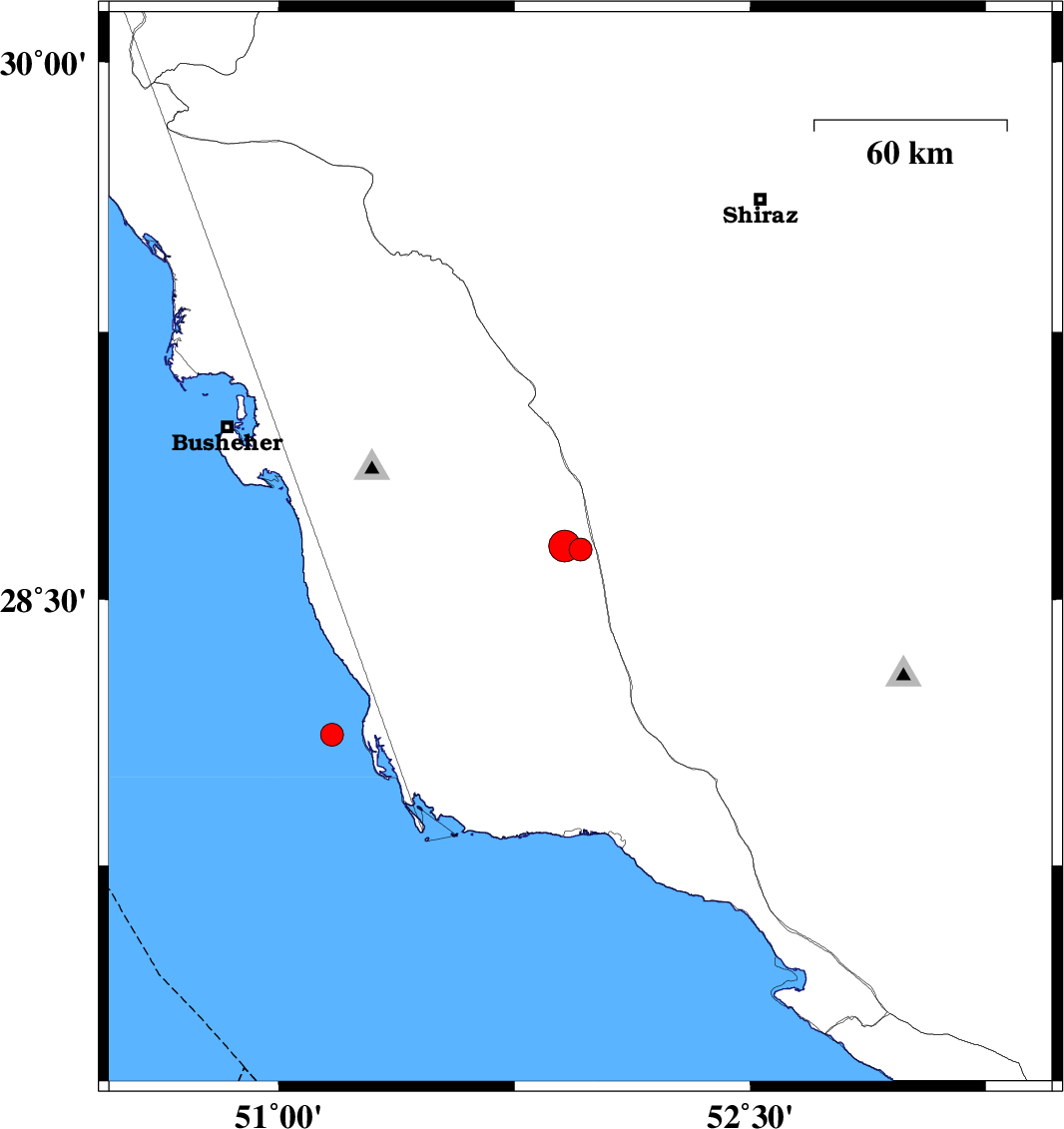 2020/08/12 | 08:11:21.6 | 12:41:21.6 | 28.12 | 51.17 | 13 | ML:3.3 | Persian Gulf, 62 km South-West of Khormog | ||