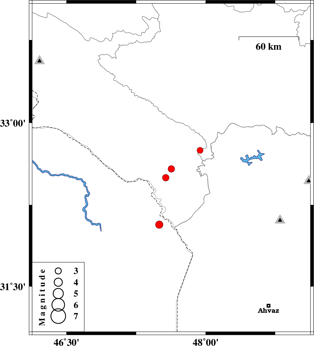 2020/08/15 | 20:54:52.1 | 01:24:52.1 | 32.58 | 47.63 | 19 | ML:3.2 | Ilam Province, 37 km South-East of Dehloran | ||