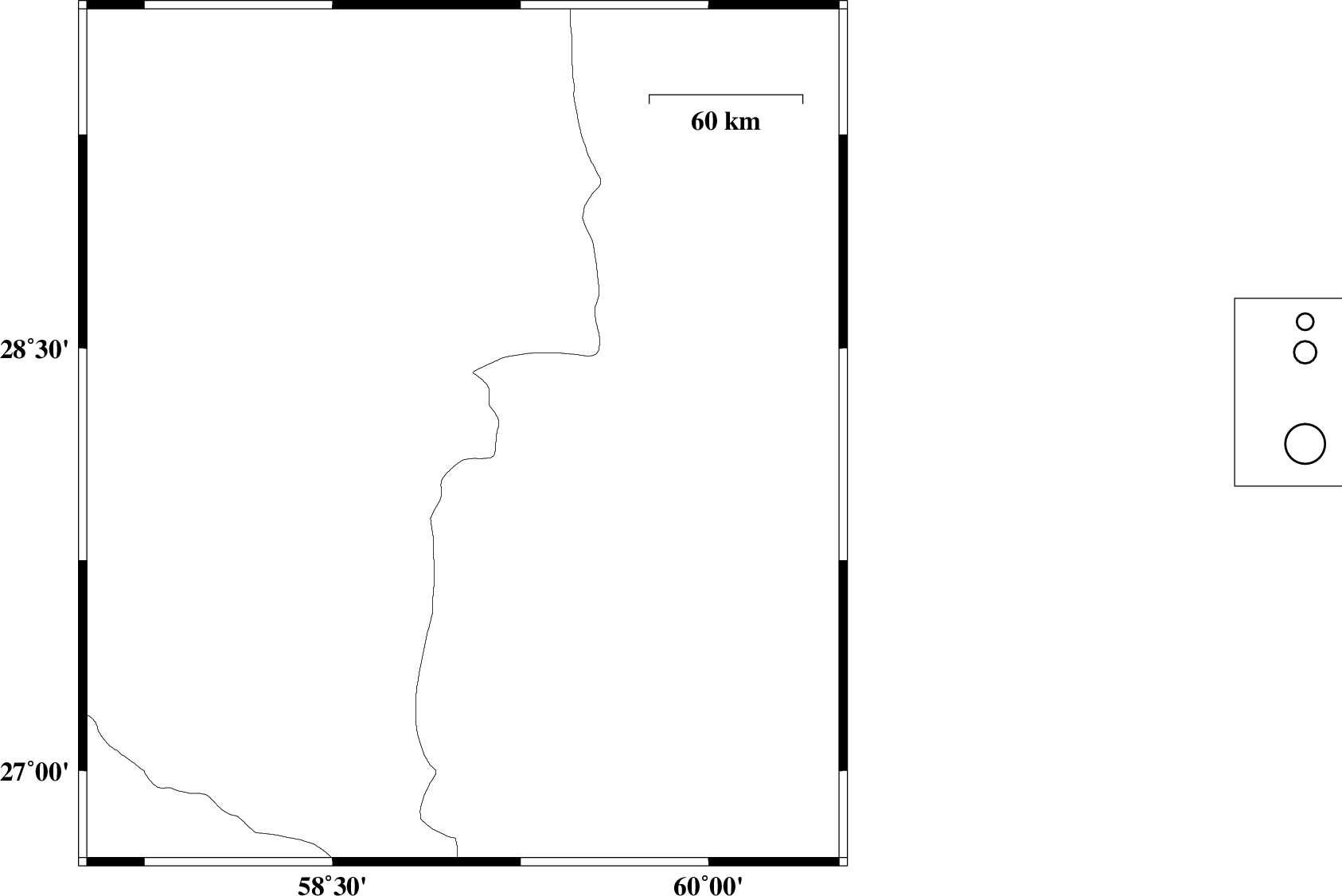 2020/09/13 | 02:28:31.7 | 06:58:31.7 | 28.19 | 59.02 | 10 | ML:3 | Kerman Province, 133 km North-East of Kahnuj |