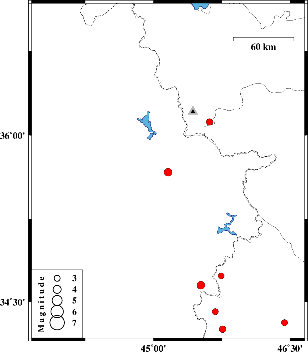 2020/08/27 | 11:13:56.5 | 15:43:56.5 | 36.119 | 45.616 | 16 | ML:3.2 | Azarbaijan Gharbi Province, 14 km -East of Sardasht | ||