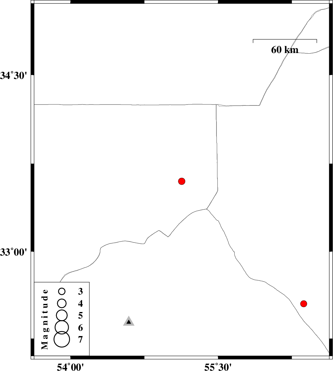 2020/09/29 | 17:37:36.6 | 21:07:36.6 | 32.55 | 56.37 | 10 | ML:3 | Yazd Province, 128 km South-West of Tabas | ||