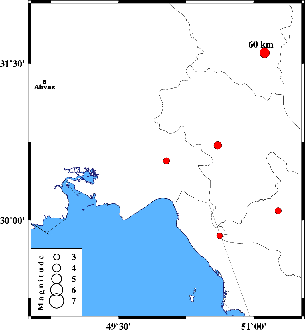 2020/10/06 | 21:45:05.5 | 01:15:05.5 | 30.57 | 50.03 | 22 | ML:3.3 | Khoozestan Province, 21 km -West of Behbahan | ||