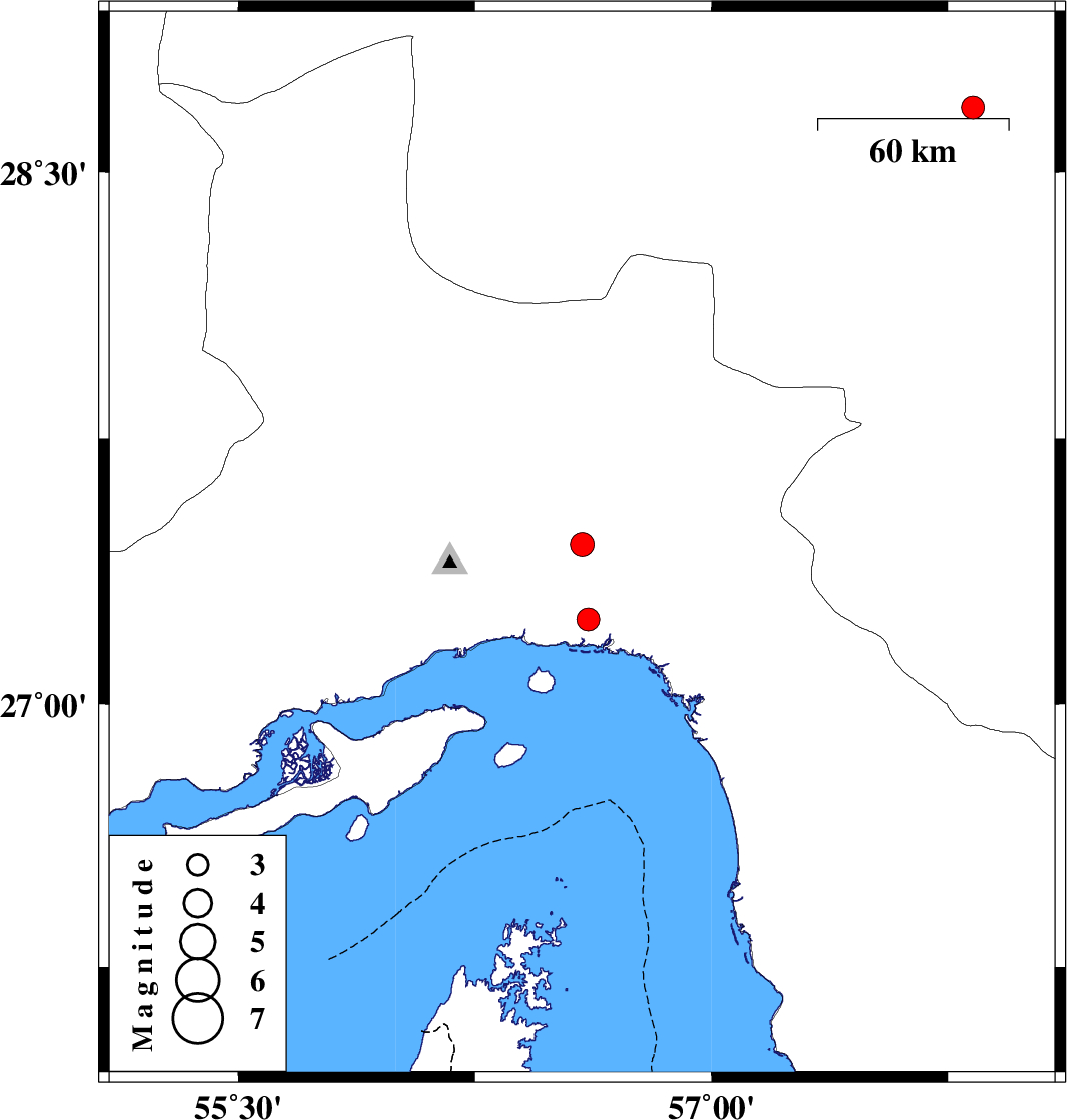 2020/10/24 | 08:01:38.1 | 11:31:38.1 | 27.45 | 56.59 | 10 | ML:3.4 | Hormozgan Province, 42 km North-East of Bandar-e abbas | ||