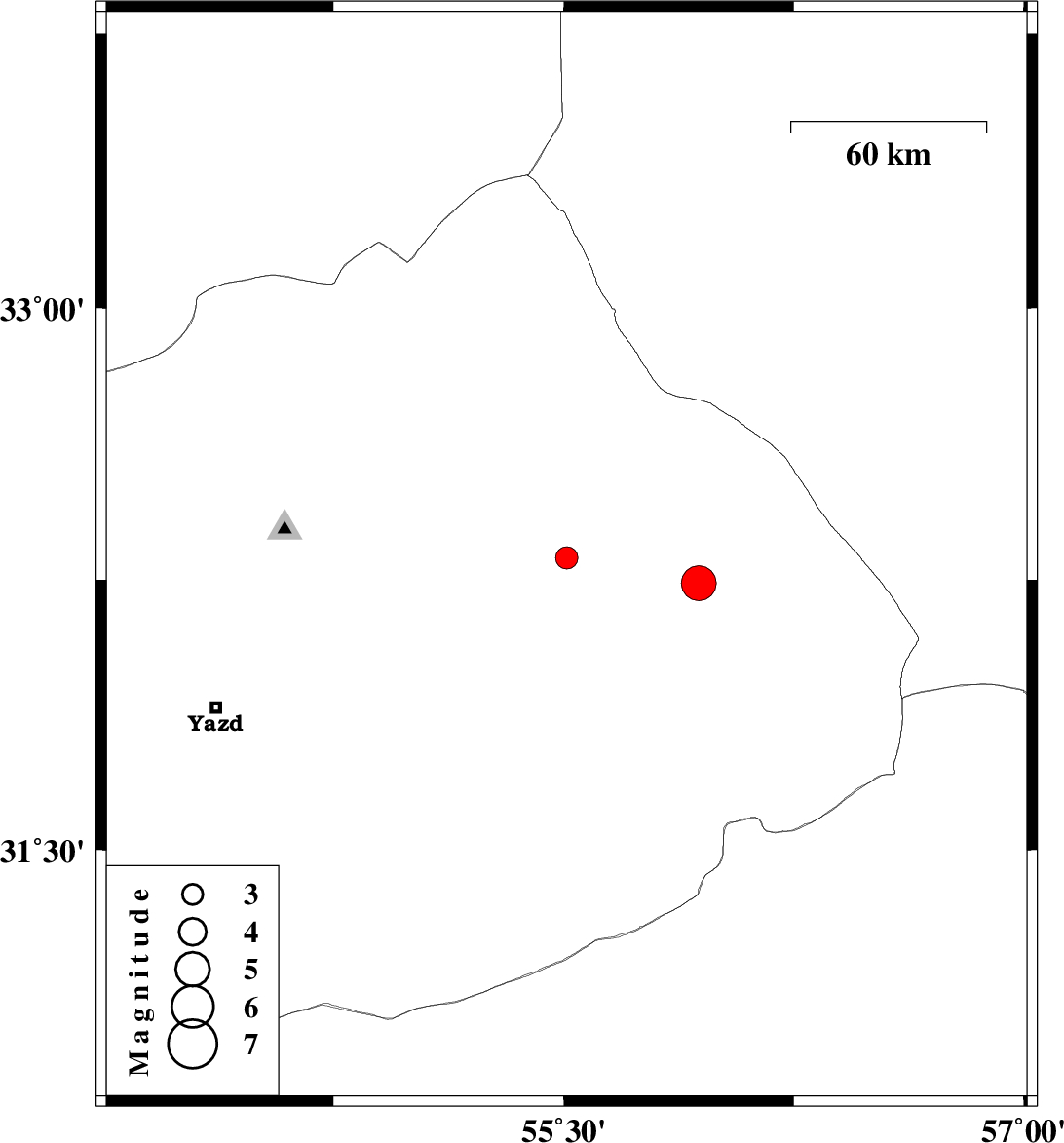 2020/10/30 | 18:15:23.2 | 21:45:23.2 | 32.31 | 55.51 | 14 | ML:3.2 | Yazd Province, 79 km North-East of Bafq | ||