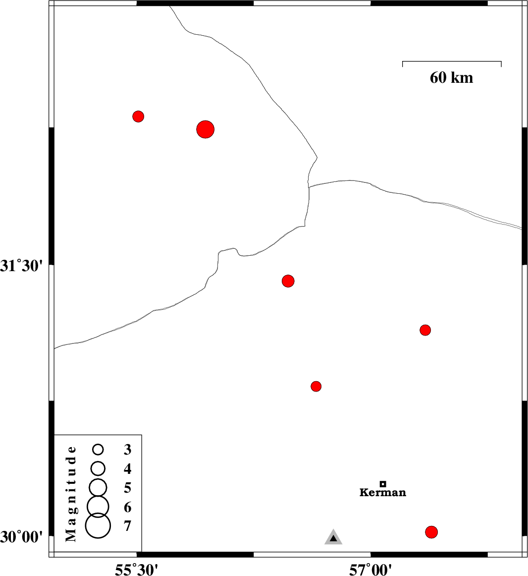 2020/11/12 | 16:00:01.2 | 19:30:01.2 | 31.41 | 56.47 | 10 | ML:3.5 | Kerman Province, 36 km North-West of Ravar | ||