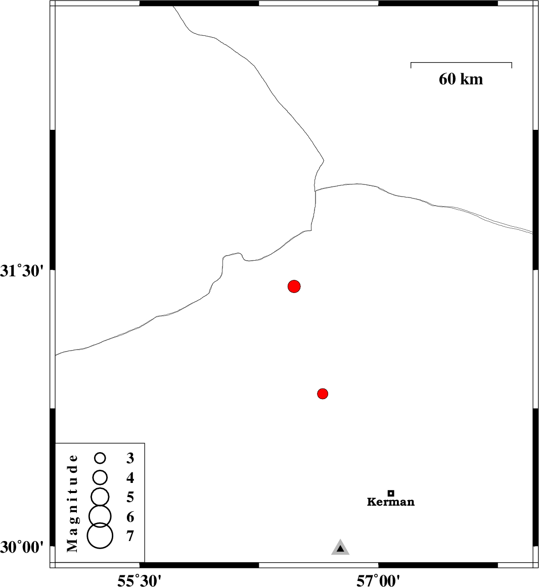 2020/11/12 | 16:00:01.2 | 19:30:01.2 | 31.41 | 56.47 | 10 | ML:3.5 | Kerman Province, 36 km North-West of Ravar | ||