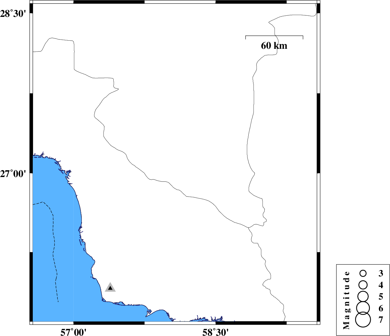2020/12/29 | 22:18:36.2 | 01:48:36.2 | 28.25 | 57.14 | 10 | ML:3.4 | Kerman Province, 64 km North-West of Kahnuj | ||