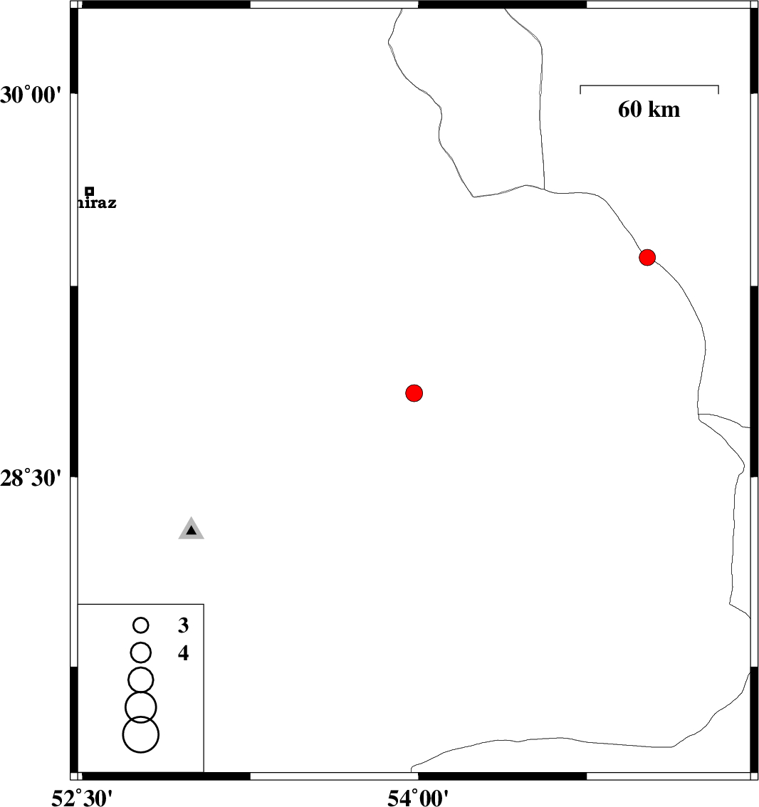 2021/01/18 | 08:28:29.4 | 11:58:29.4 | 28.83 | 53.98 | 10 | ML:3.4 | Fars Province, 34 km South of Estahban | ||