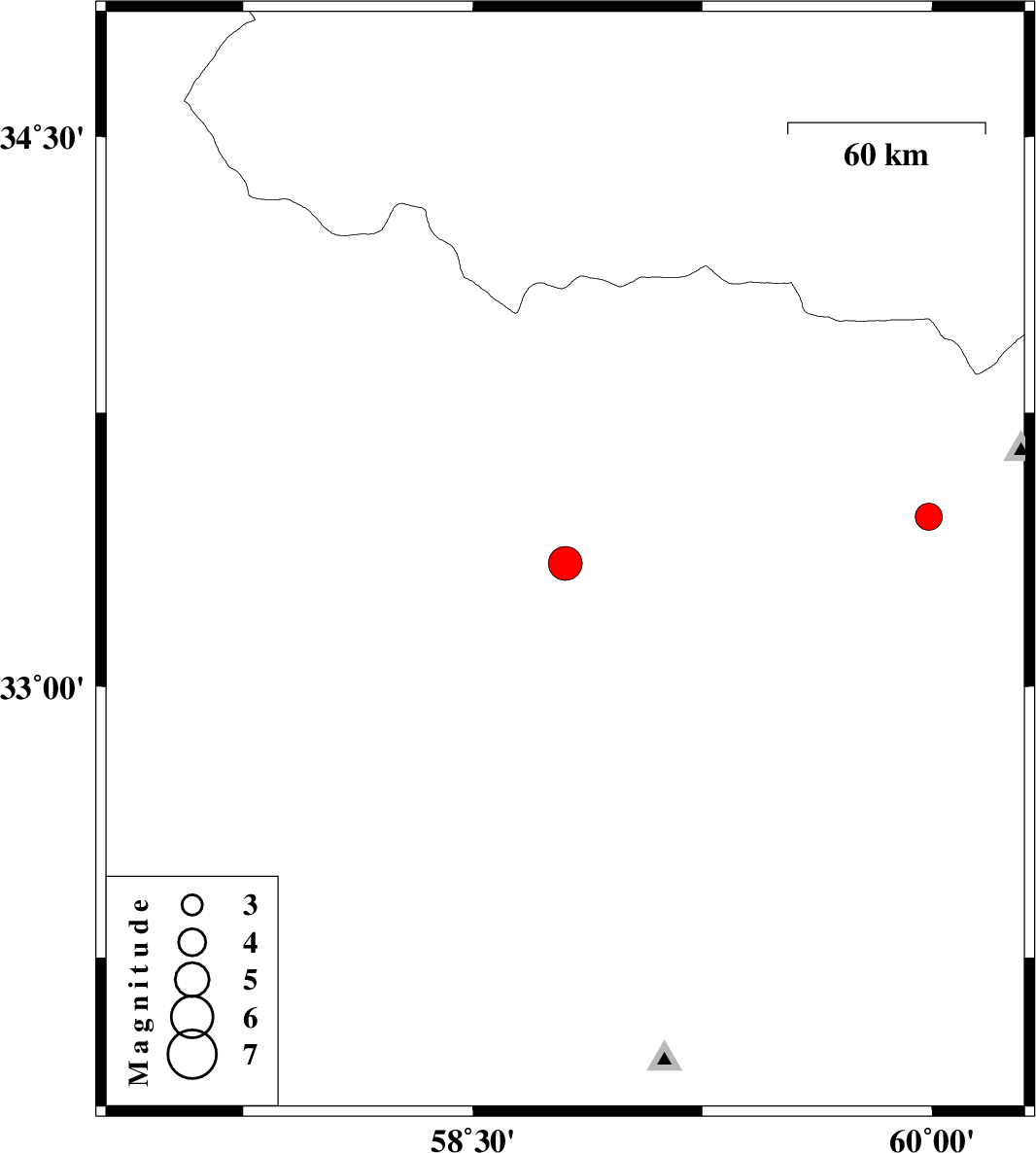 2021/11/09 | 23:11:18.7 | 02:41:18.7 | 33.465 | 59.989 | 12 | ML:3.9 | Khorasan(south) Province, 96 km North-East of Sarbisheh |