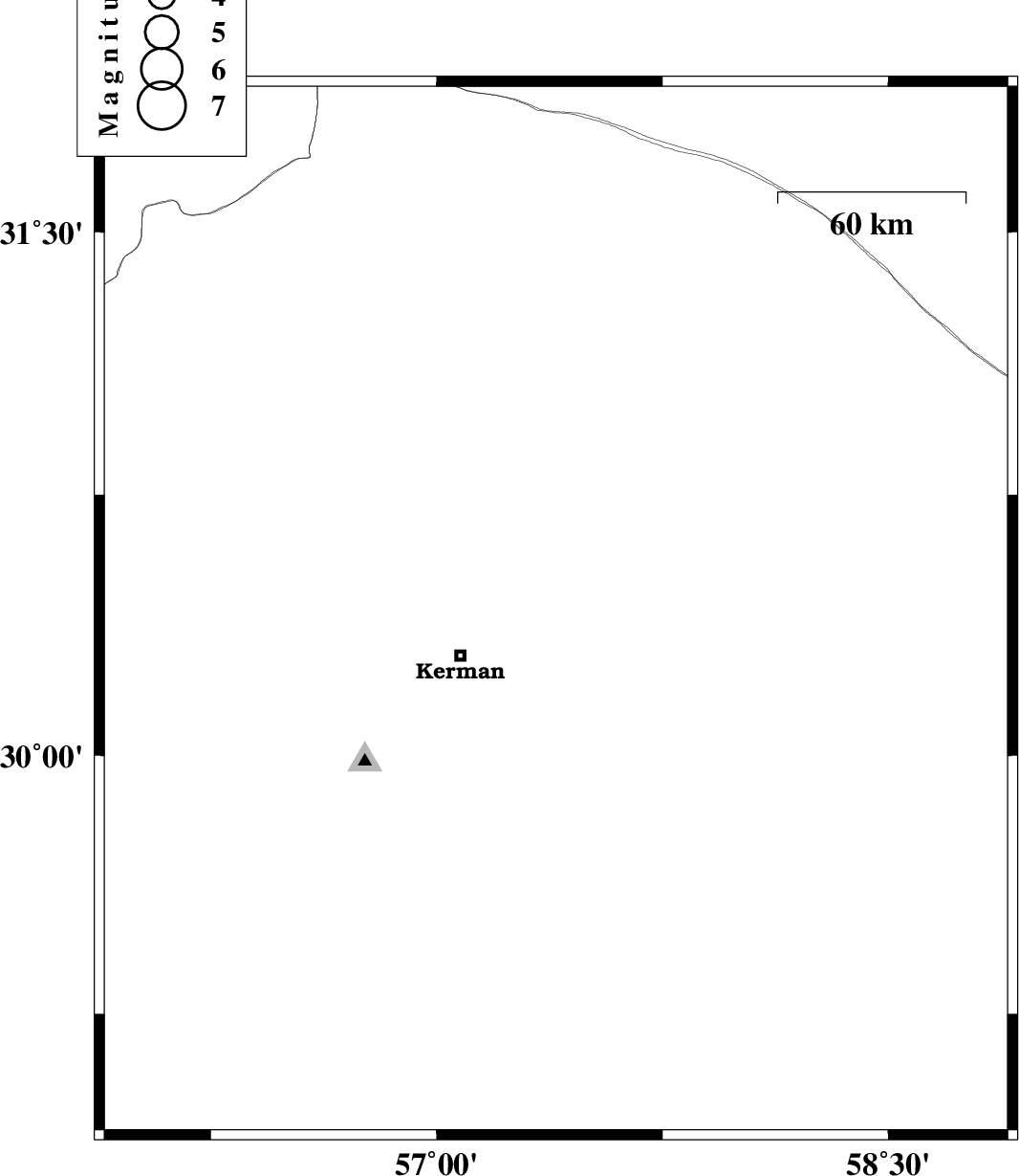 2022/01/16 | 07:52:15.2 | 11:22:15.2 | 30.413 | 57.396 | 12 | ML:3 | Kerman Province, 33 km North-East of Kerman | ||