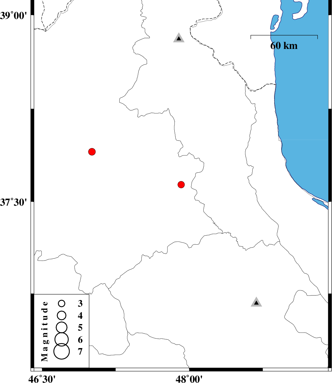 2022/03/29 | 00:03:57.7 | 04:33:57.7 | 37.903 | 47.009 | 12 | ML:3.3 | Azarbaijan Sharghi Province, 16 km -East of Bostanabad |