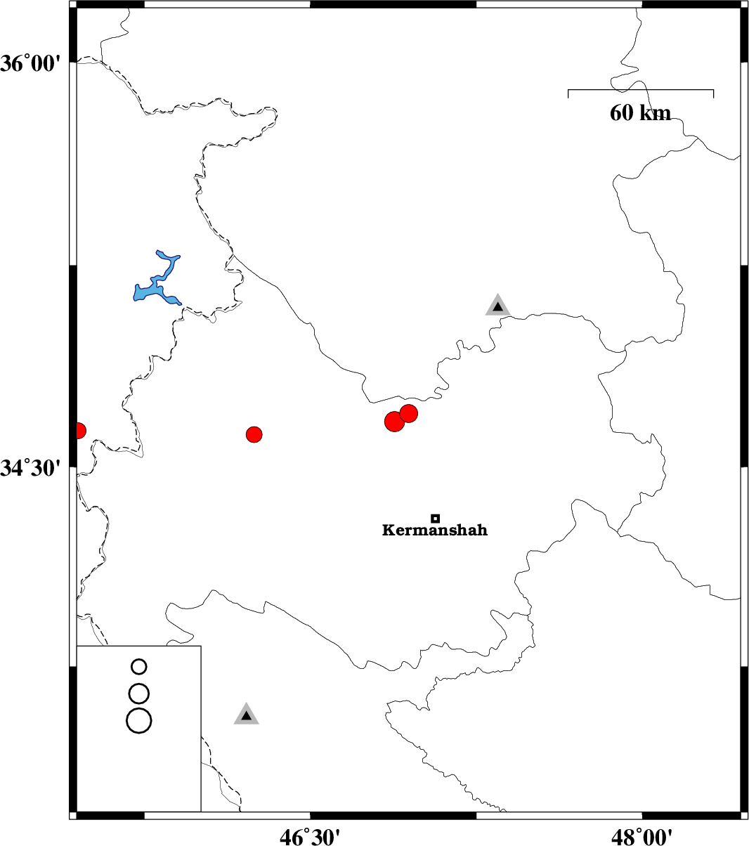 2022/03/19 | 18:47:05.5 | 22:17:05.5 | 34.669 | 46.881 | 12 | ML:4.1 | Kermanshah Province, 18 km South of Kamyaran | ||