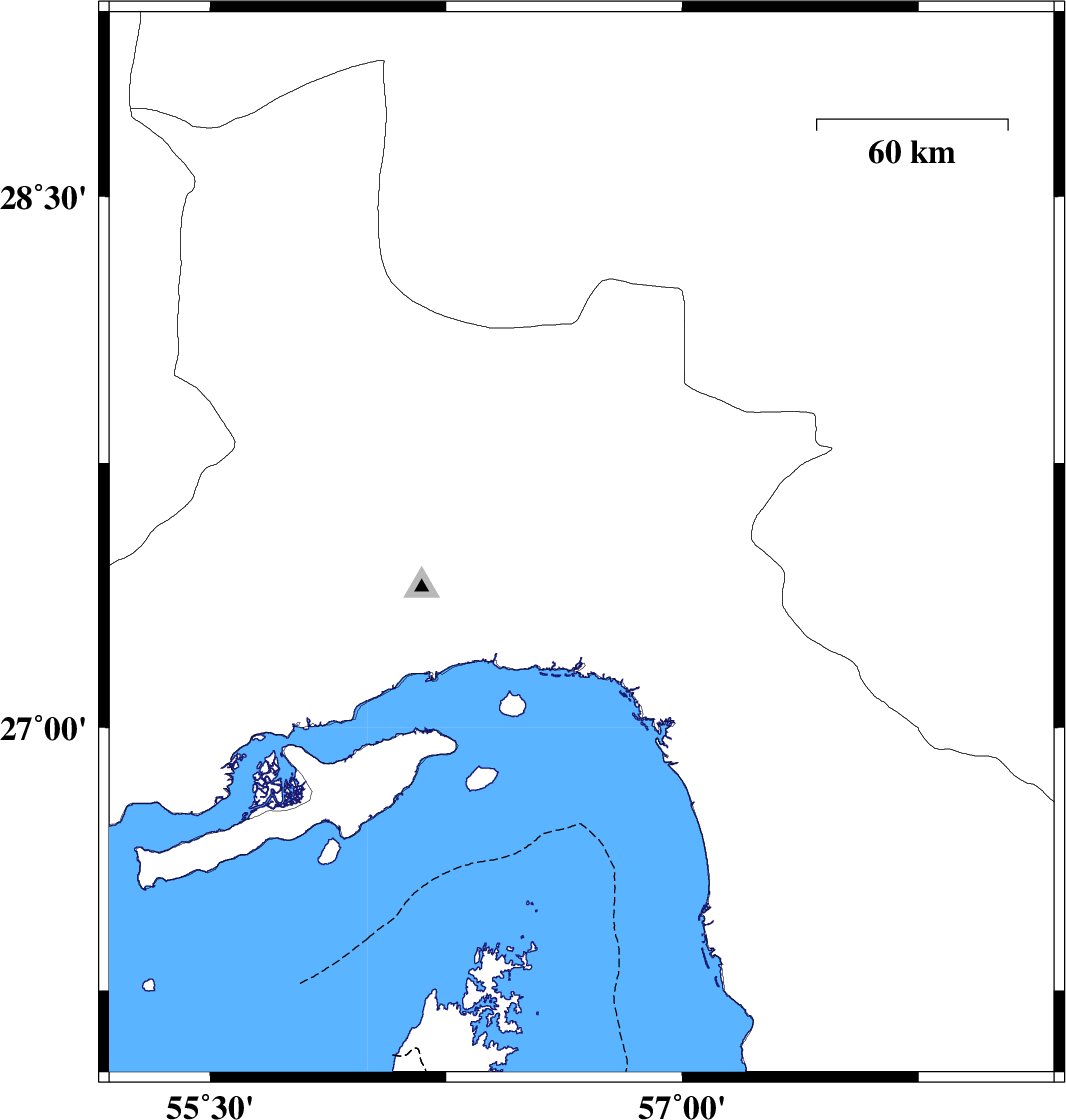 2023/04/03 | 03:55:05.0 | 07:25:05.0 | 28.043 | 56.938 | 12 | ML:4 | Hormozgan Province, 75 km -West of Kahnuj |