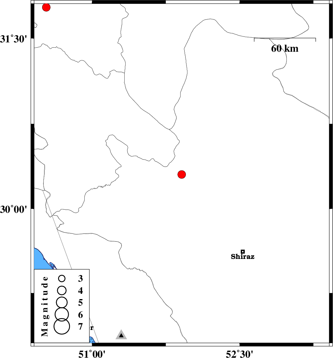 2023/05/14 | 07:41:46.4 | 11:11:46.4 | 30.303 | 51.911 | 8 | ML:3.7 | Fars Province, 9 km of Ardakan | ||