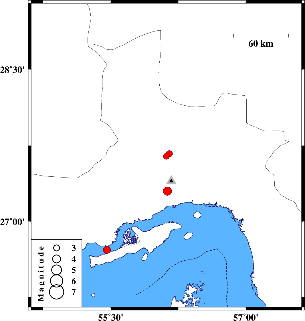 2023/10/24 | 11:17:52.0 | 14:47:52.0 | 27.3 | 56.13 | 10 | ML:4.3 | Hormozgan Province, 20 km North-West of Bandar-e abbas | ||