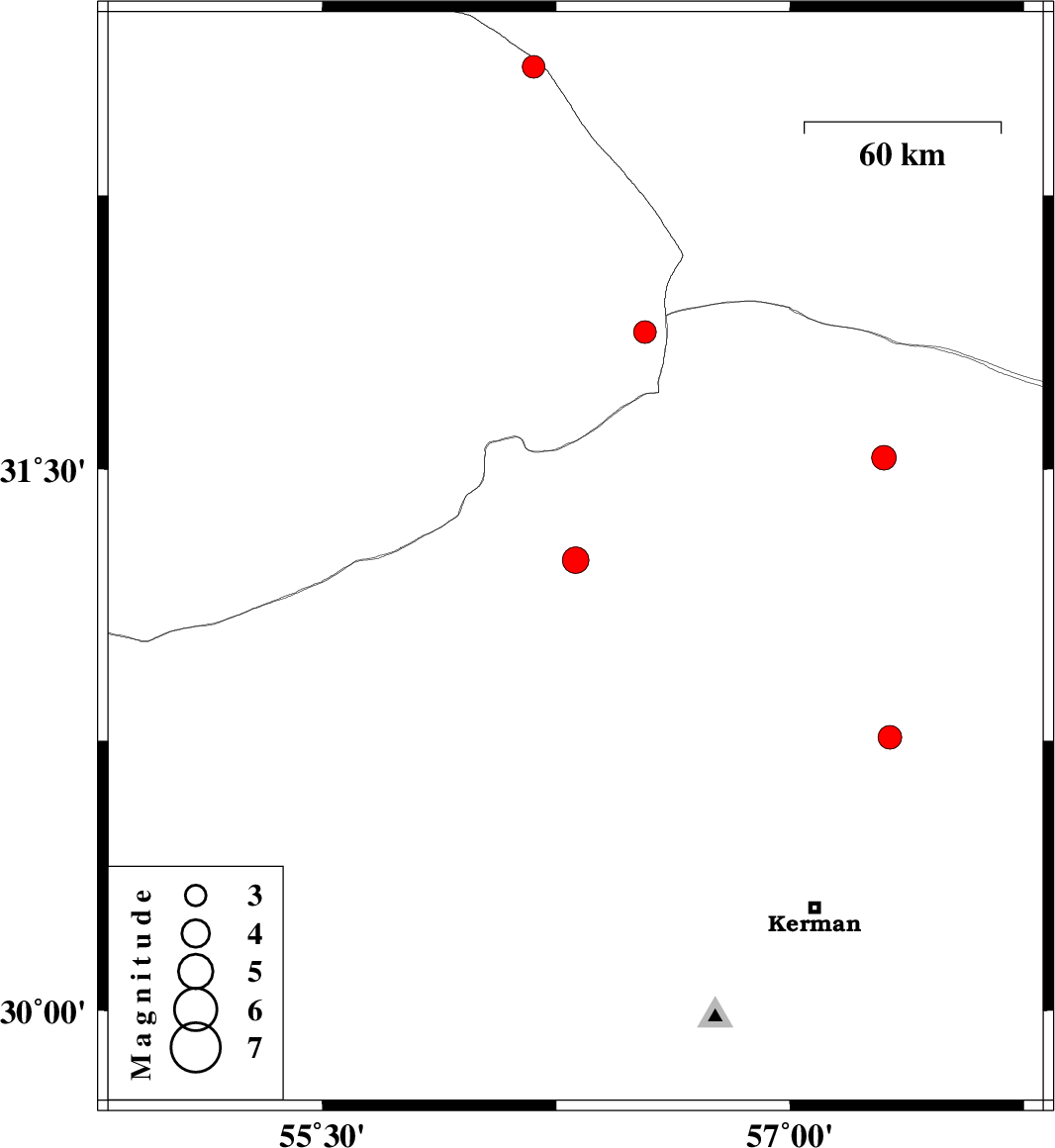 2023/11/18 | 07:32:14.5 | 11:02:14.5 | 30.76 | 57.321 | 12 | ML:3.4 | Kerman Province, 57 km North-East of Kerman | ||
