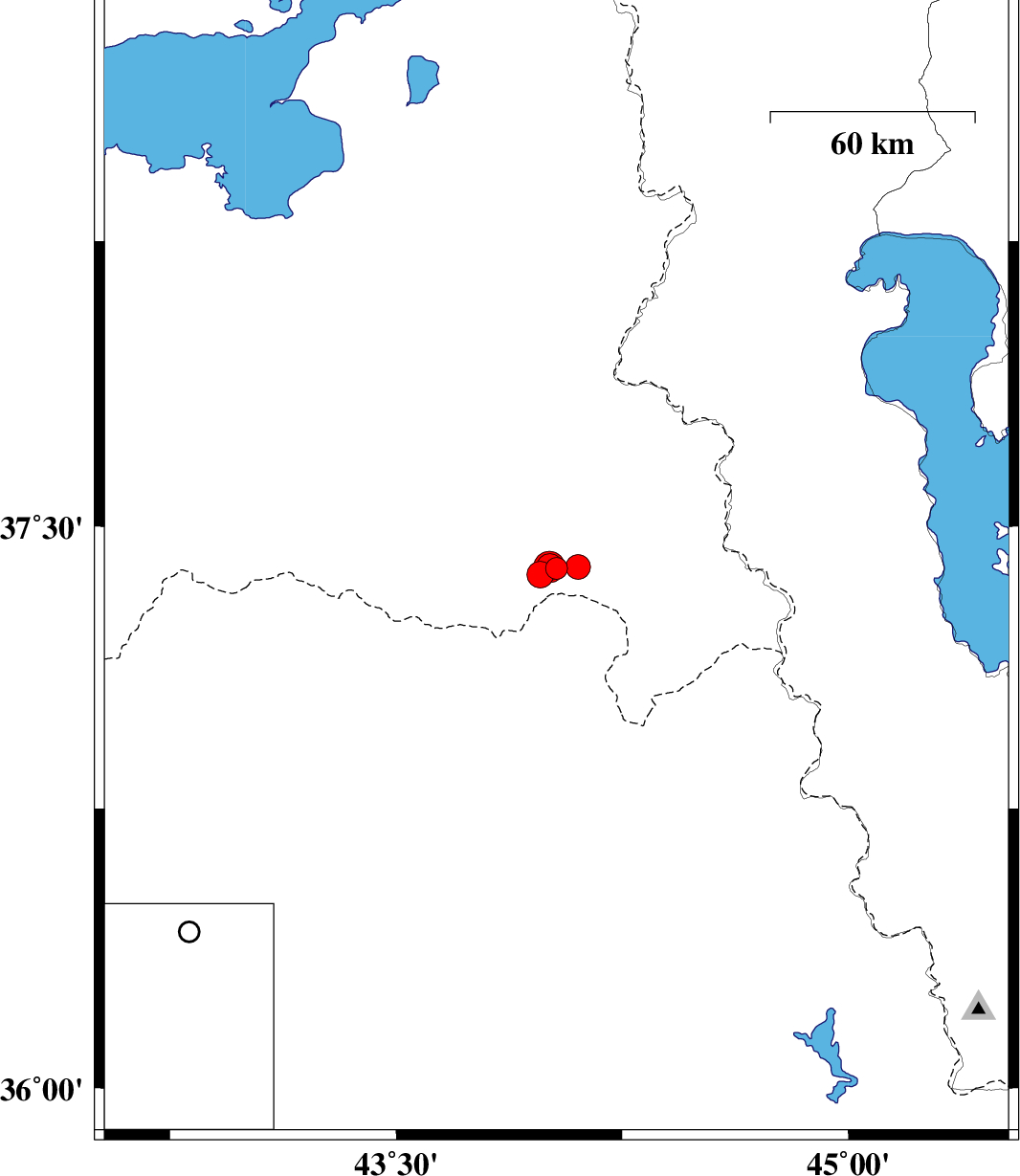 2024/01/06 | 17:25:56.7 | 20:55:56.7 | 37.388 | 44.032 | 12 | ML:3.2 | Turkey, 93 km South-West of Orumiyeh | ||