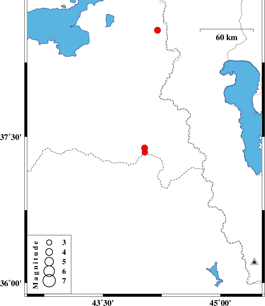 2024/01/24 | 02:15:25.2 | 05:45:25.2 | 37.34 | 44.035 | 12 | ML:3.4 | Turkey, 94 km South-West of Orumiyeh | ||