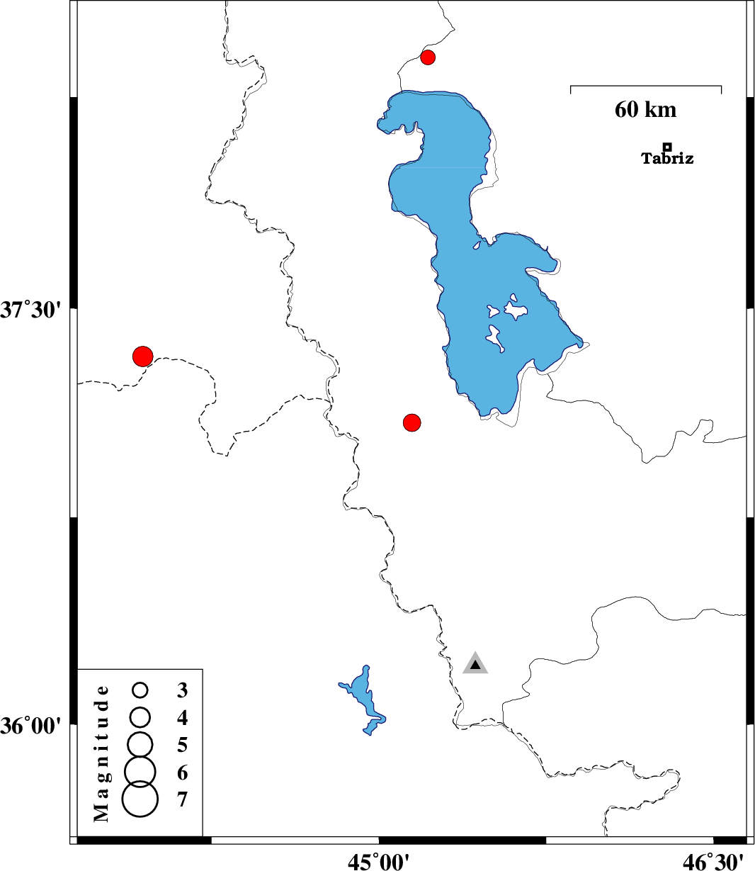 2024/02/06 | 01:19:37.5 | 04:49:37.5 | 38.39 | 45.219 | 12 | ML:3 | Azarbaijan Sharghi Province, 30 km South-East of Khoy | ||